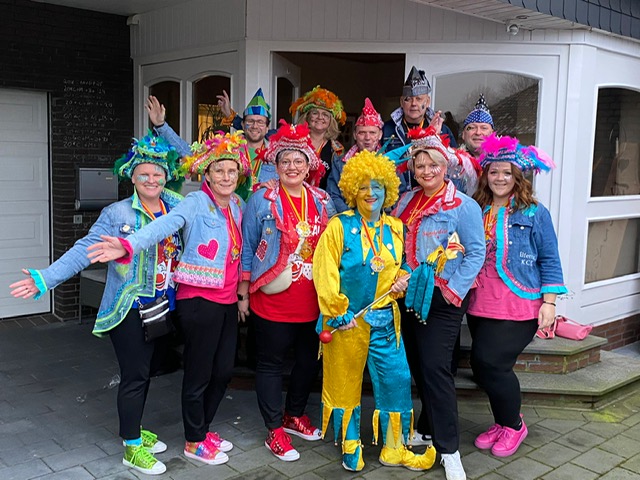 Elferrat oben von links: Stefan Gottkehaskamp, Patricia Frye-Thomann, Hubert Drees, Volker Haupt, Uwe Stephan; vorne von links: Silke Sperveslage, Silvia „Augi“ Vodde, Sabrina Kenkel, Hofnärrin Bianca „Schnulli“ Punte, Laura Villwock, Lisa Gottkehaskamp,